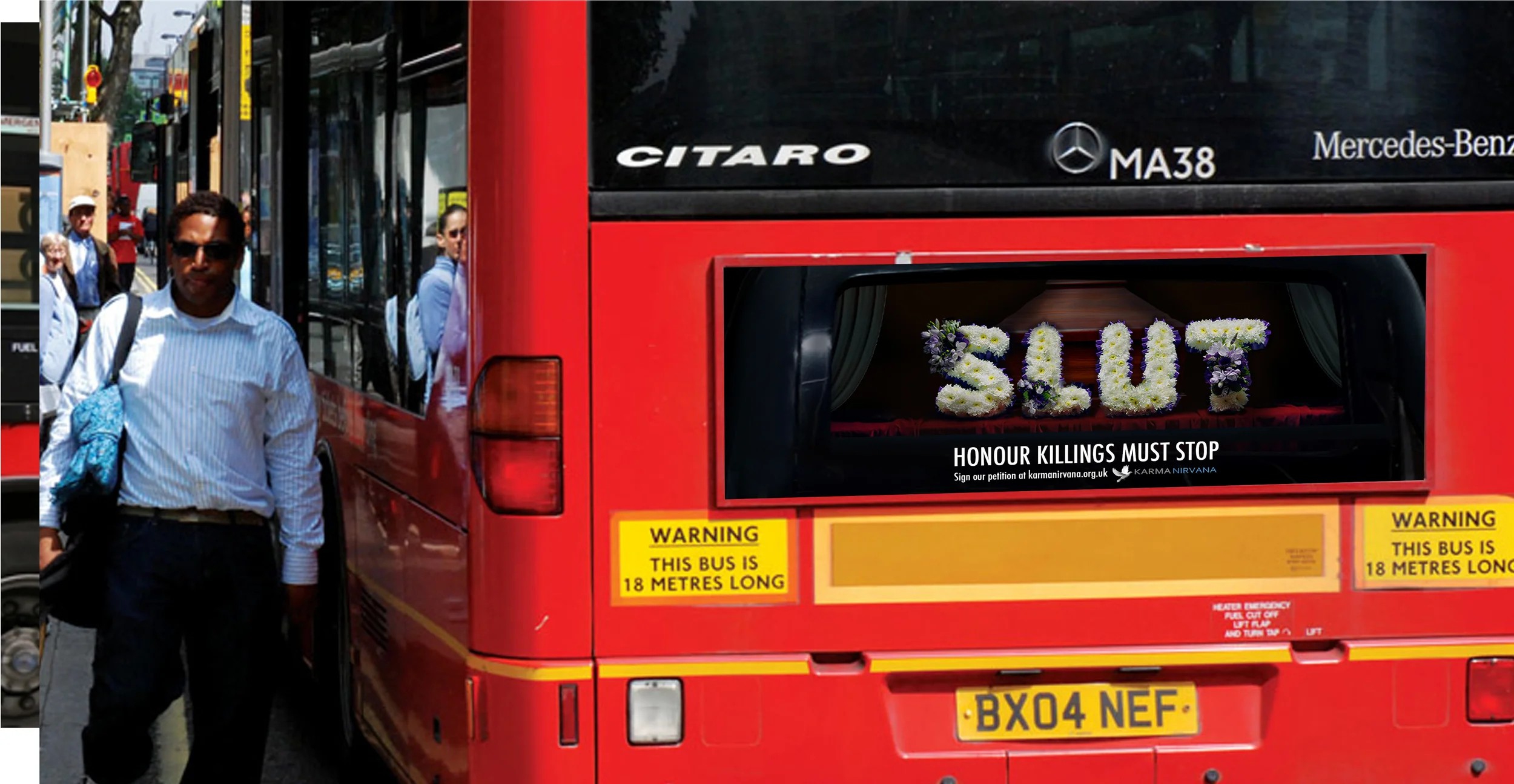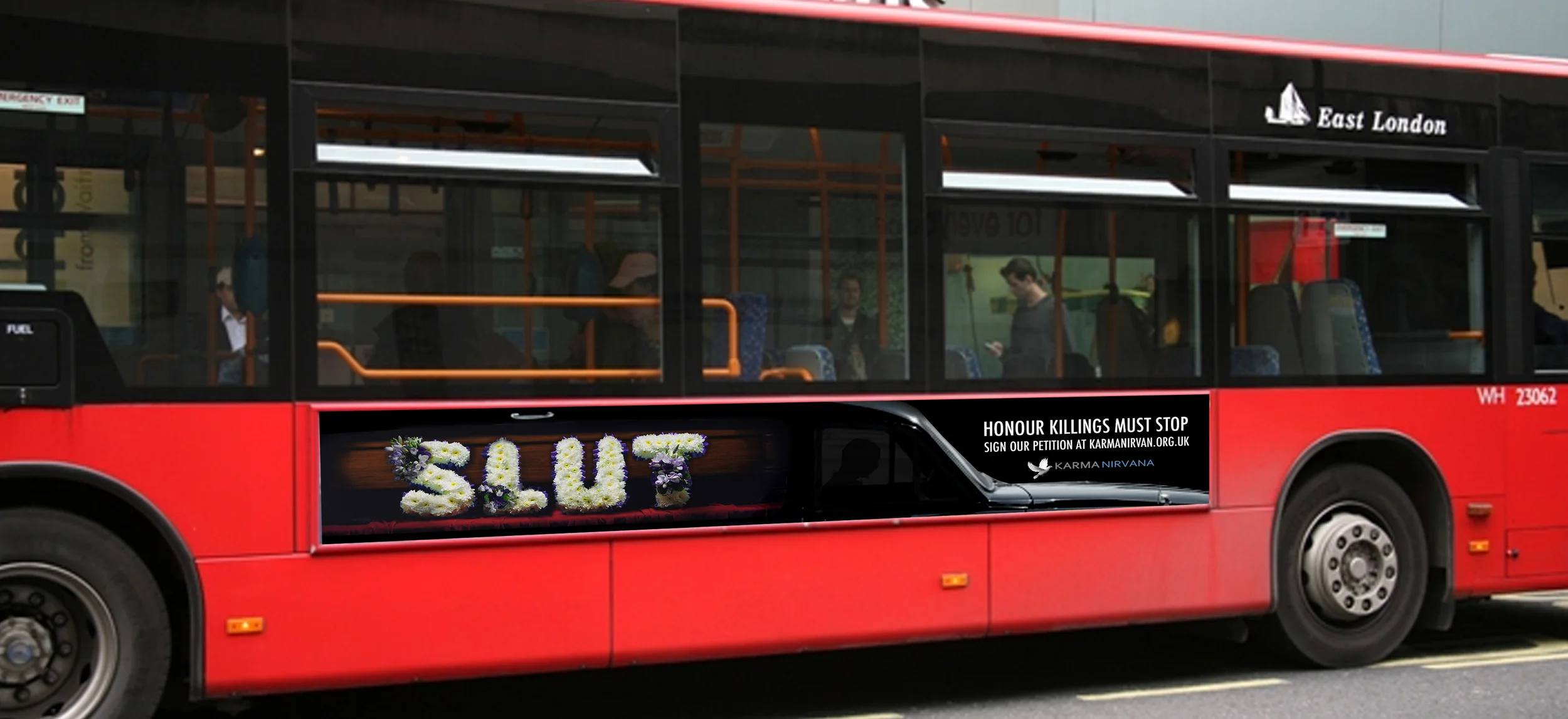 Karma Nirvana is a small charity that fights the practises of forced marriage and honour violence. The aim of the work I created was to raise the profile of the charity, as well as get people to sign a petition for a recognised day to remember victims of honour killings on the day of Shalifea Ahmed’s death.