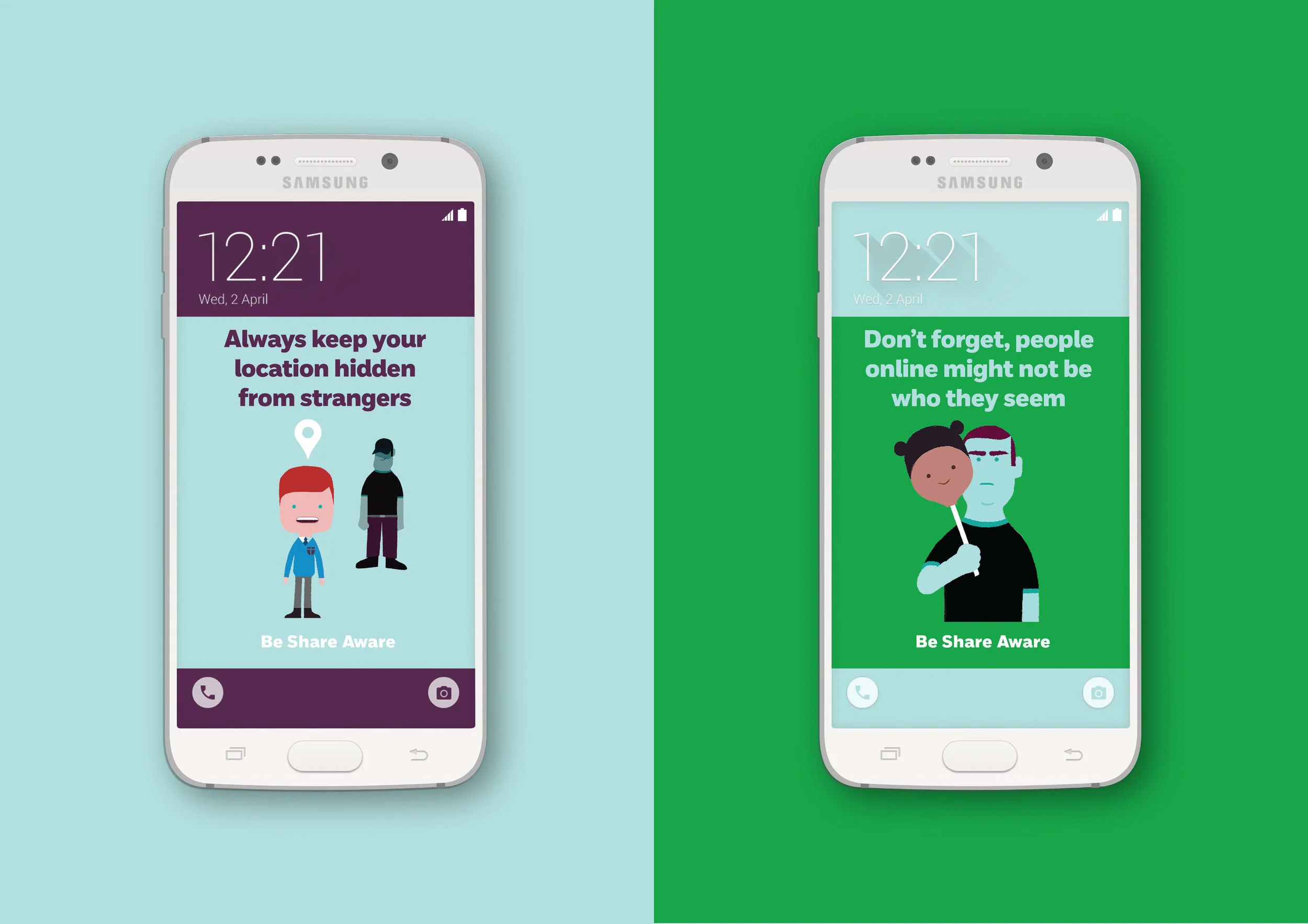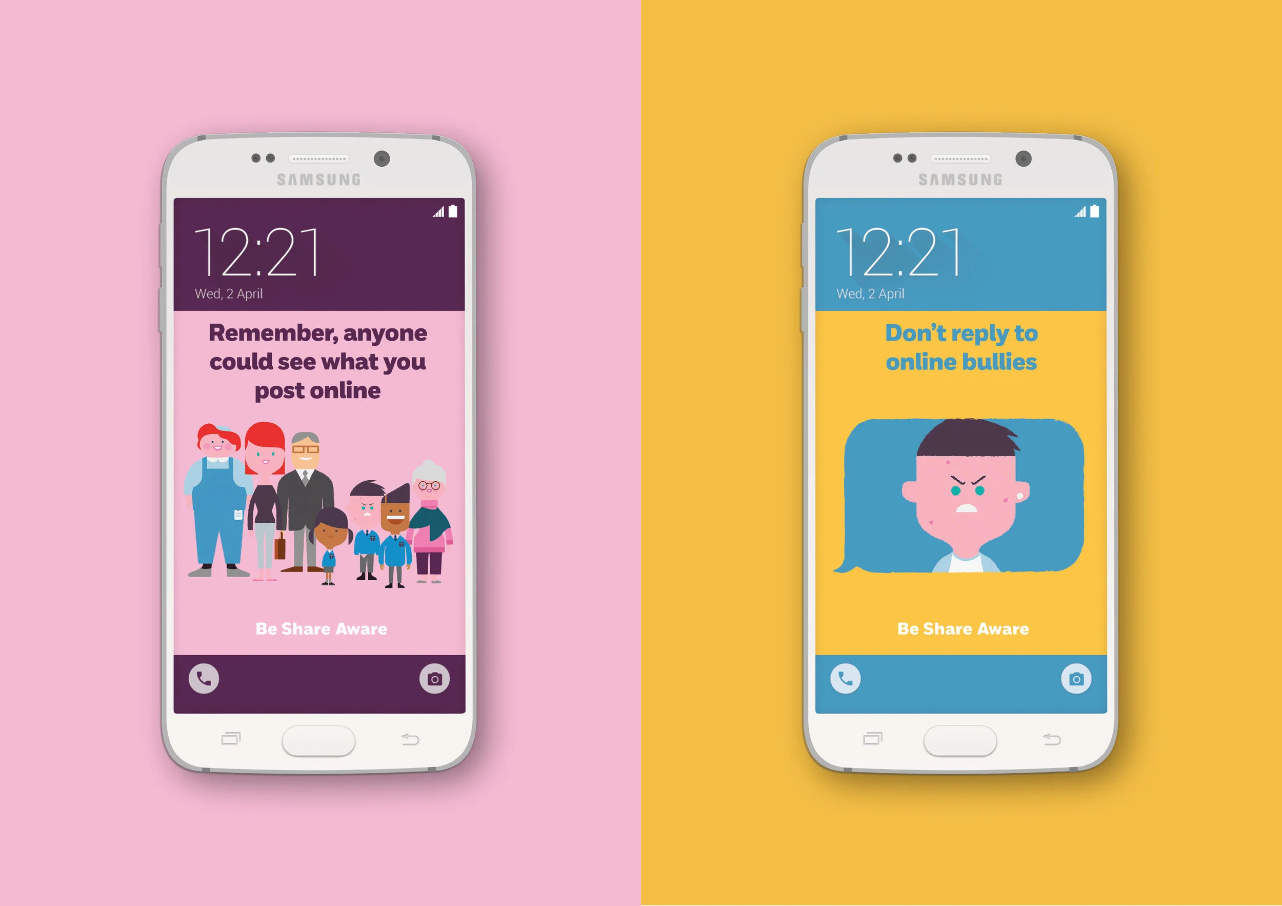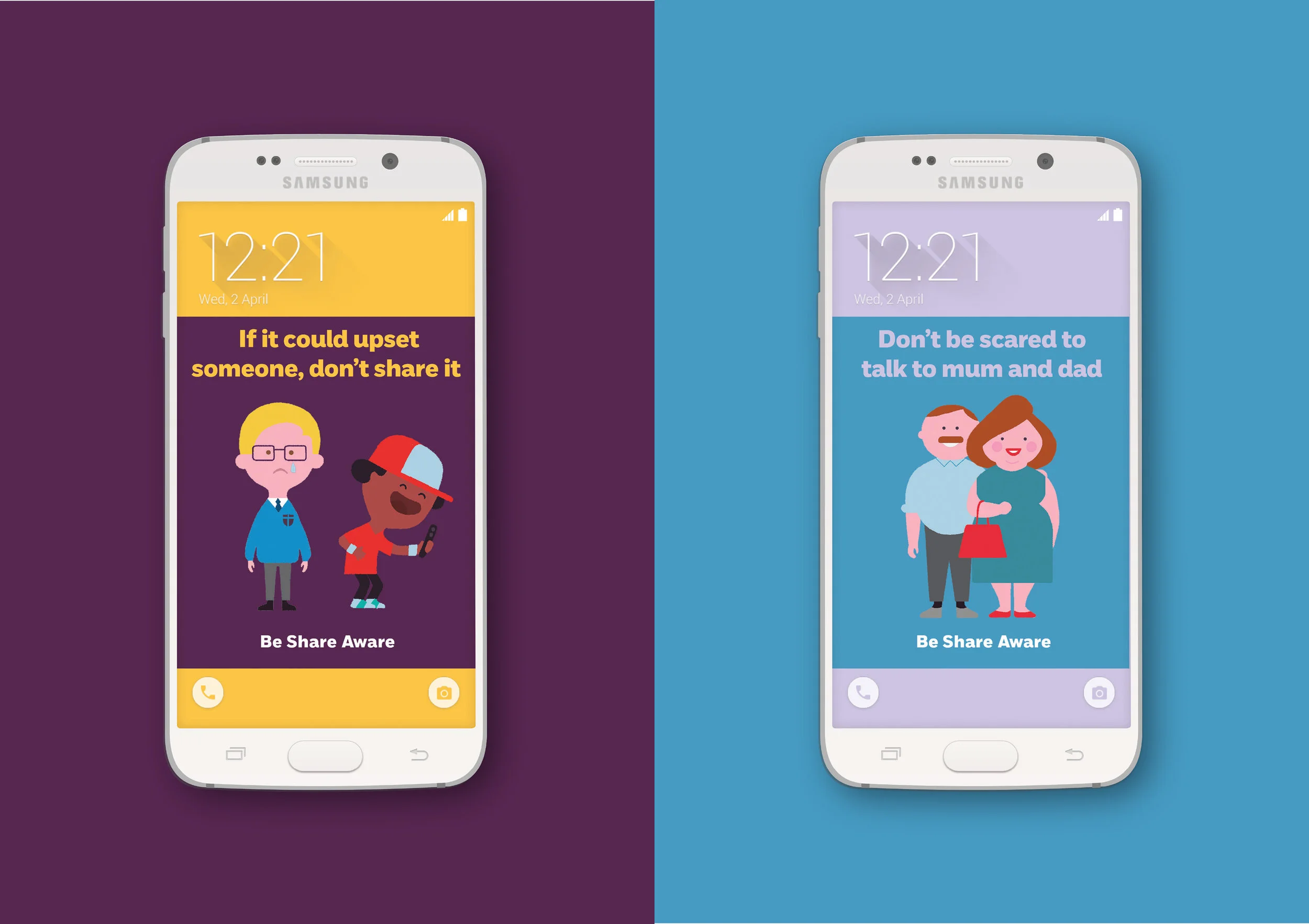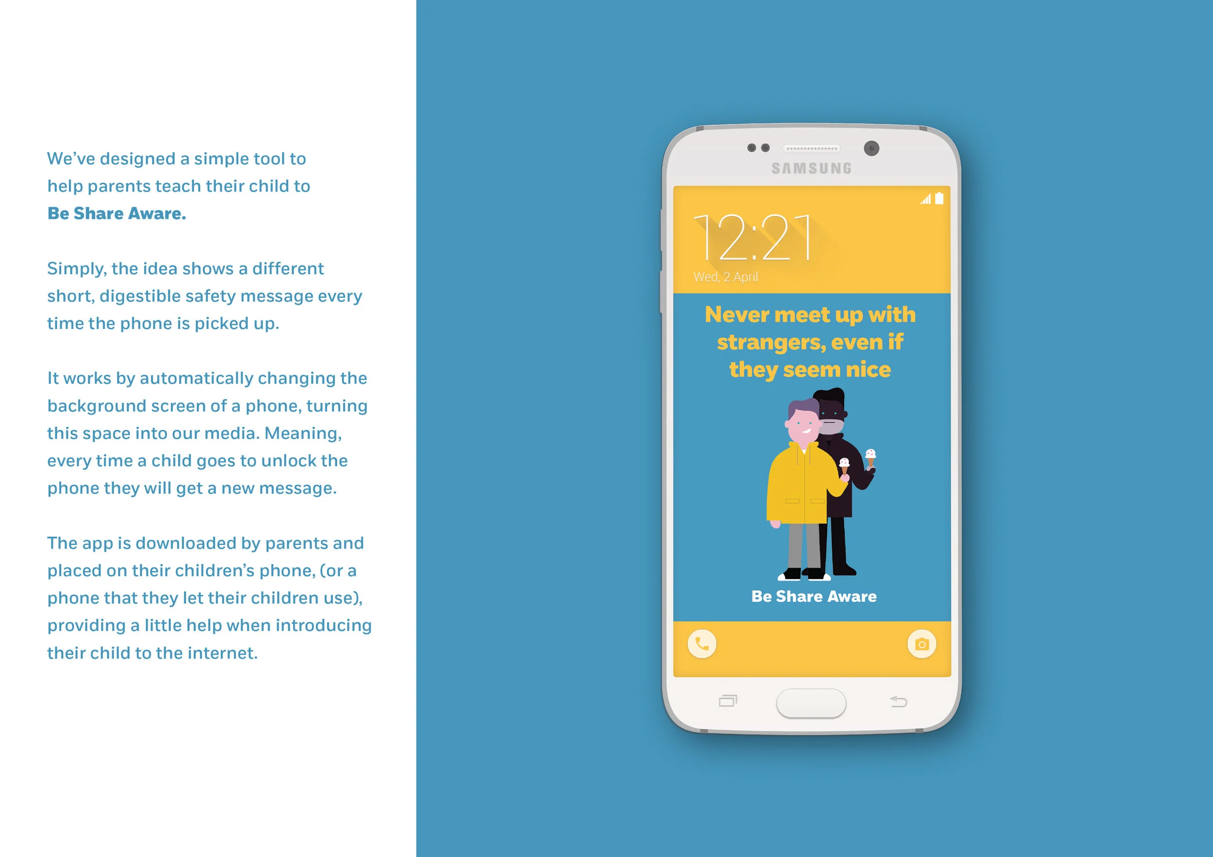 In addition to the film, I went above and beyond and designed an app. The idea was that parents loaded the app onto their children's phone which automatically changed the lock screen image to show different safety messages, drilling in internet safety advice every time they look at their phone to go online..